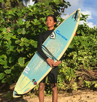 プロサーファー、原田泰三の息子で自身も「JOCジュニアオリンピック U12」をはじめ、次世代サーファーを発掘する「OAKLEY TRY OUT 2017」AA-Kids(U-12)等の大会でも優勝経験を持つ期待のサーファー。